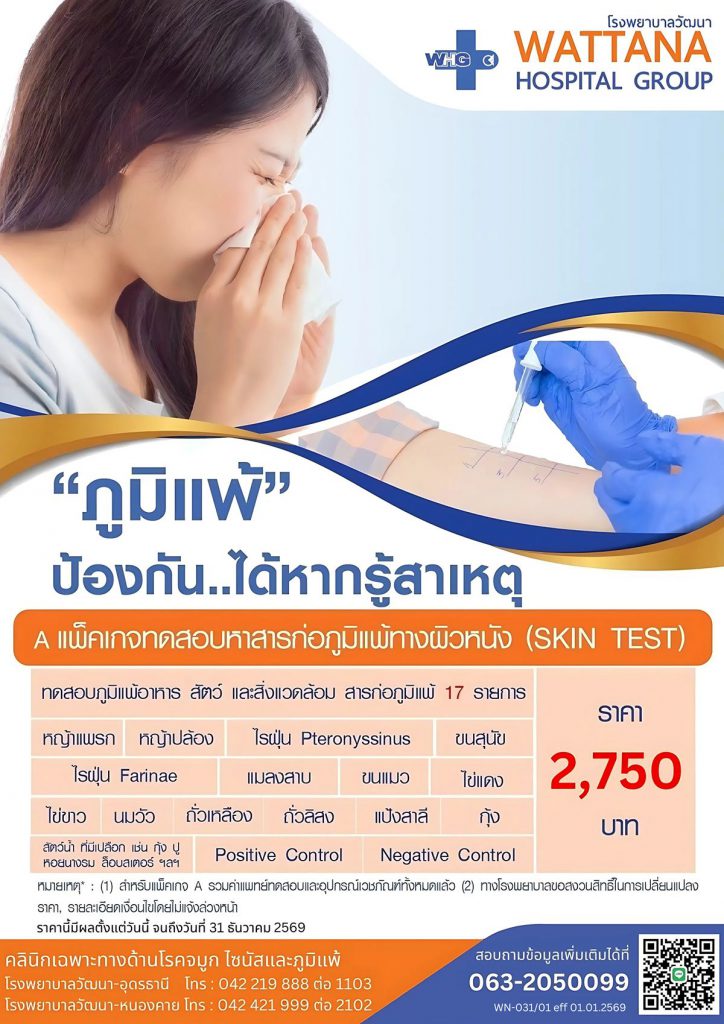 แพ็คเกจตรวจภูมิแพ้ ทางผิวหนัง รพ. วัฒนา อุดรธานี