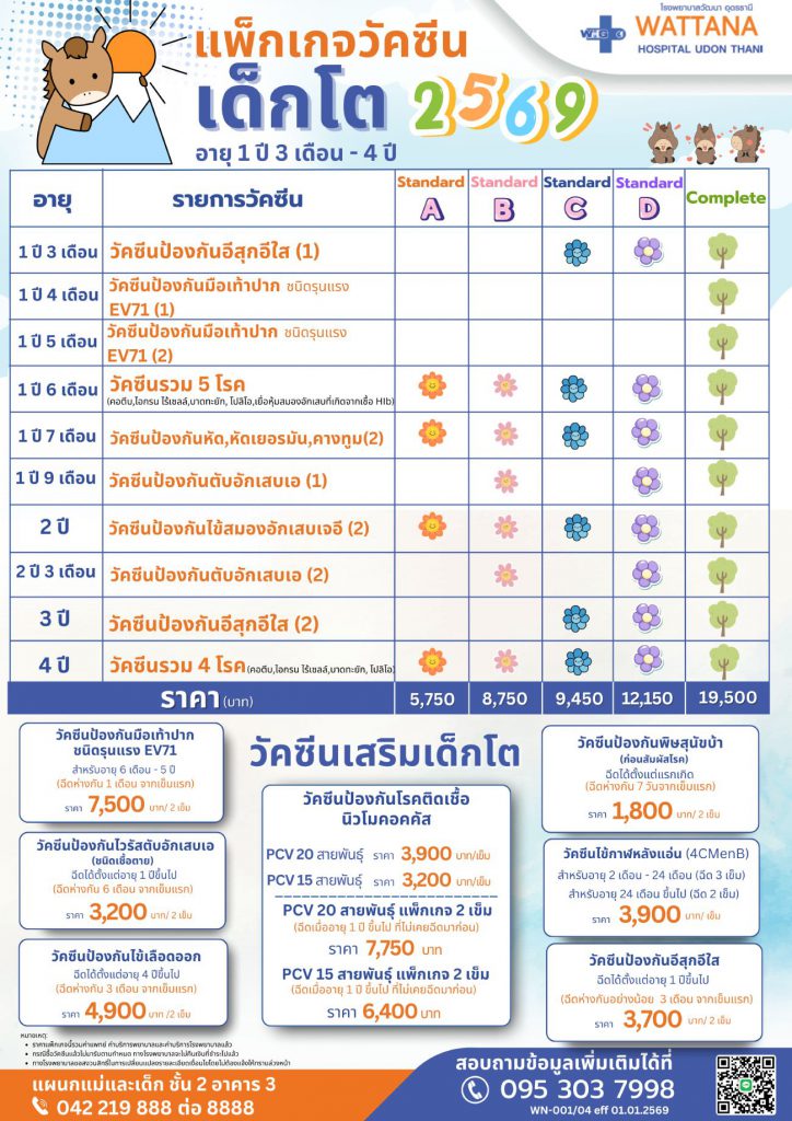 แพ็กเกจวัคซีนเด็กโต อายุ 1 ปี 3 เดือน – 4 ปี 2569